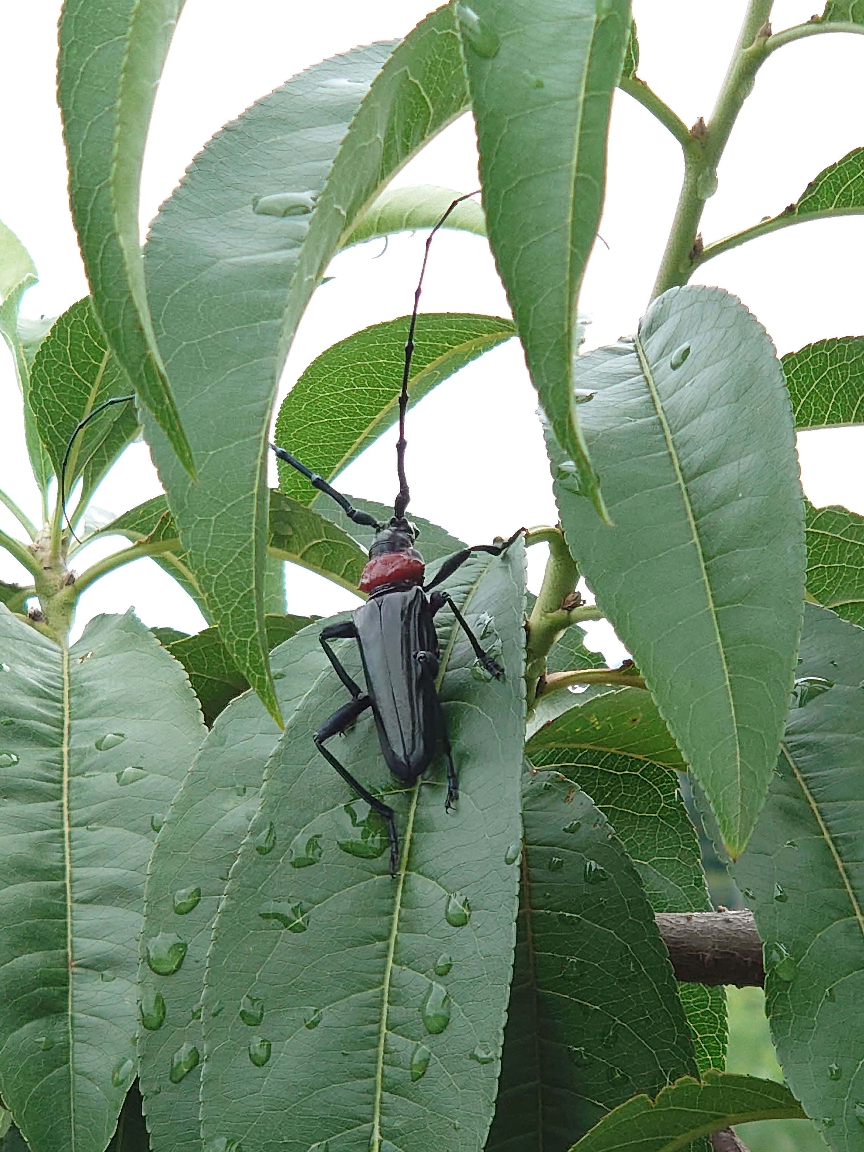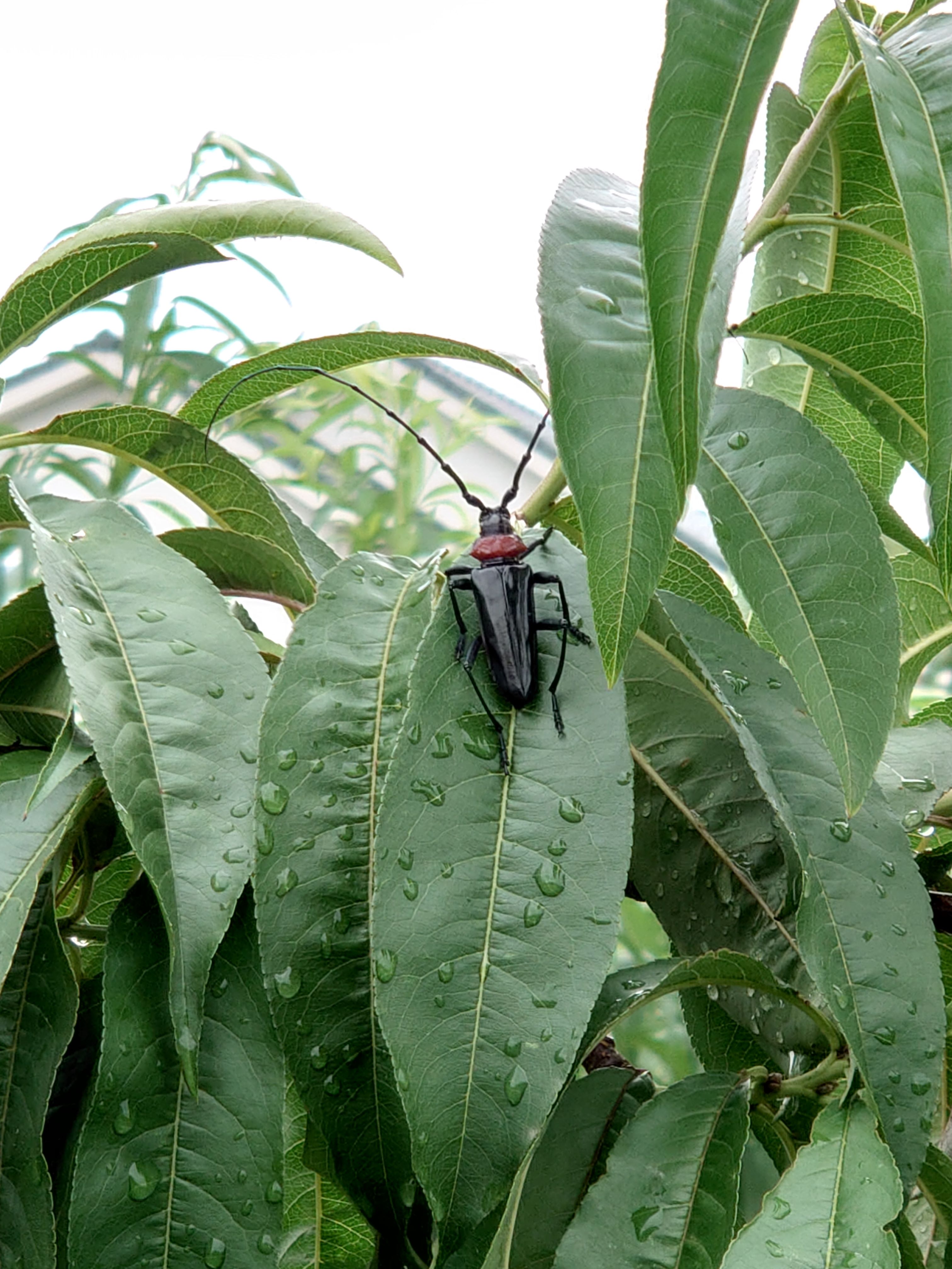 クビアカツヤカミキリは、サクラ、モモ、ウメなど主にバラ科の樹木に発生し、枯死させる特定外来生物です。クビアカツヤカミキリの幼虫は、樹木に寄生し、内部を食い荒らし枯らしてしまいます。