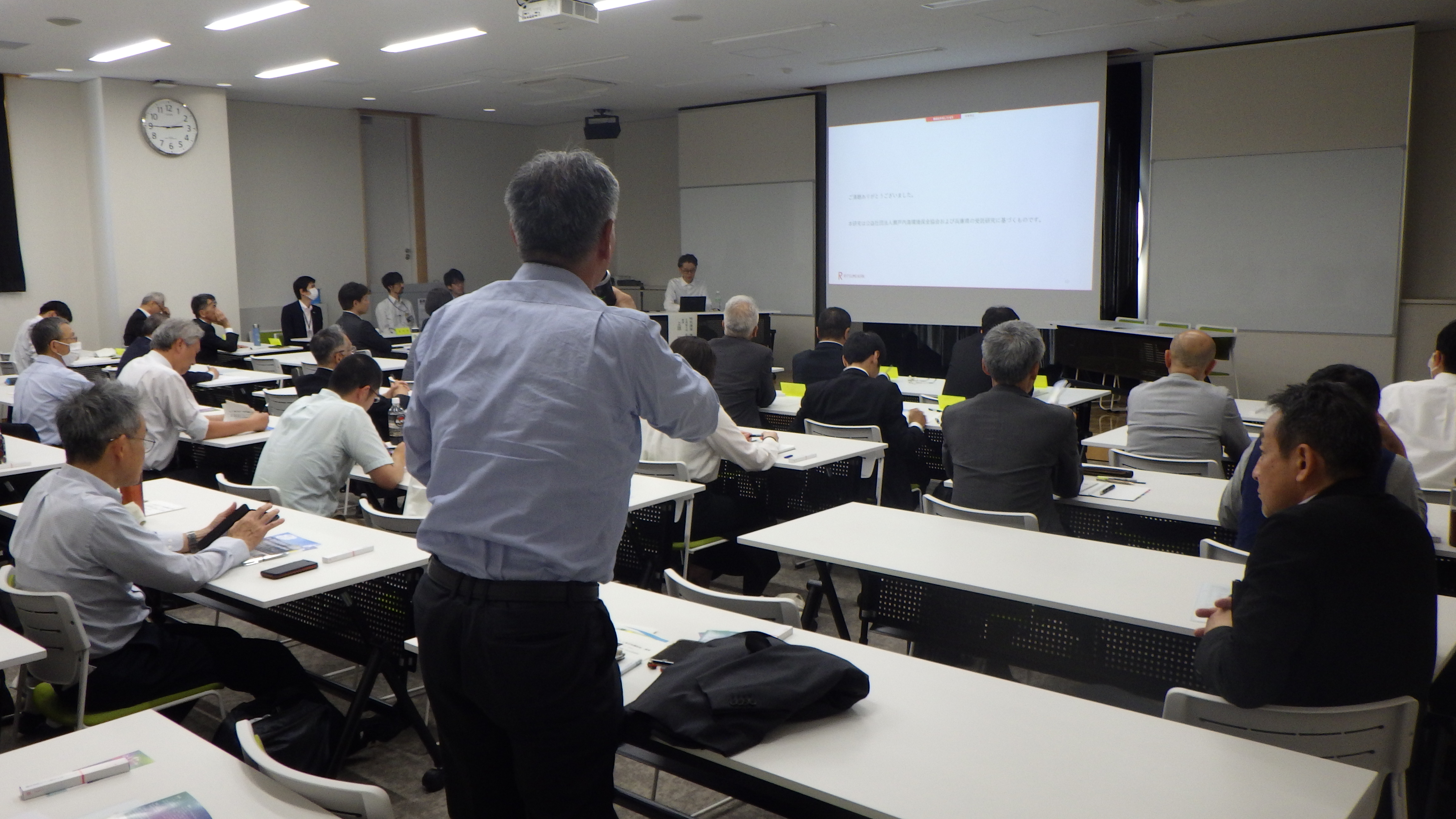 総会に続き開催した特別講演では、講師として上原 拓郎 立命館大学政策科学部教授をお招きして豊かな海づくりに関する「兵庫県民の栄養塩類管理施策に対する意識と出前おさかな講習会が小中学生の海に対する考え方に与える影響」として研究成果について発表いただきました。