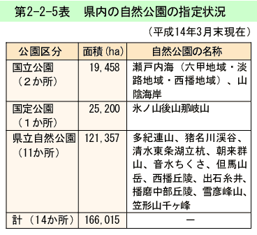 兵庫県の植生自然度の分布をみると、植生自然度7の一般に二次林とよばれているコナラ林やアカマツ林が最も広い面積を占めており、植生自然度2の耕作地、緑の多い住宅地がこれに次いで広い面積となっている(資料編第6-1表参照)。