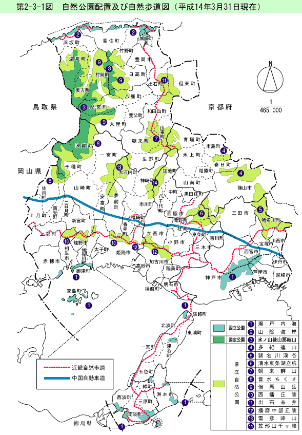 第2-3-1図 自然公園配置及び自然歩道図(平成14年3月31日現在)