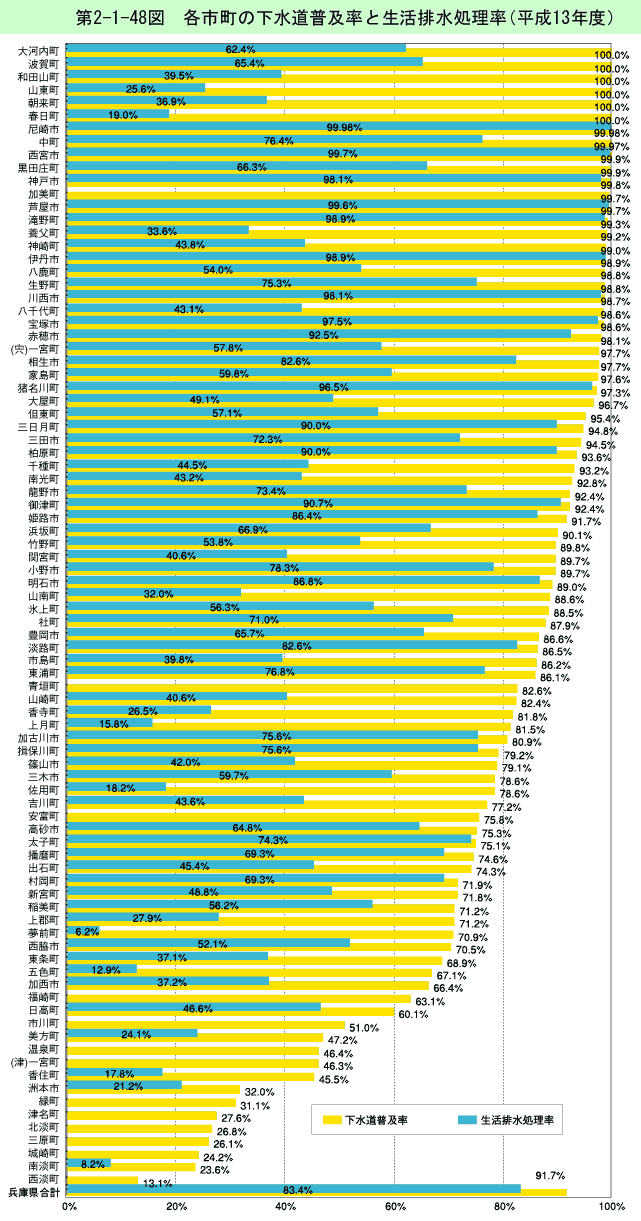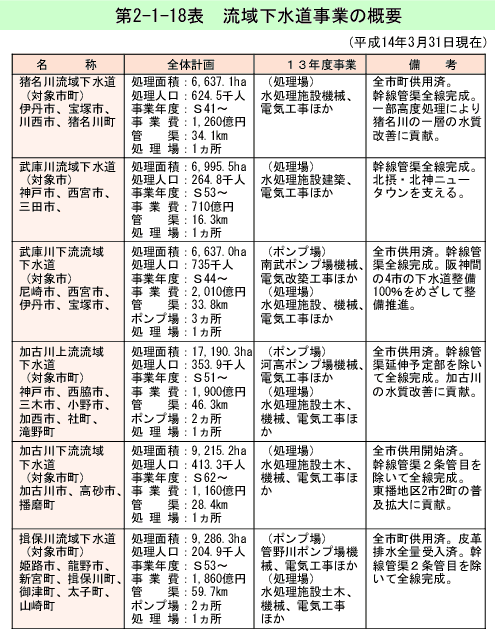 神崎川・猪名川は、兵庫県、大阪府境付近を南下し、大阪湾に注いでいる。かつて工場排水、生活排水などの流入により汚濁した河川であったが、兵庫地域公害防止計画に基づく下水道整備の推進などにより、近年その水質はかなり改善されている。