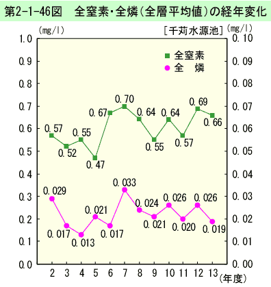第2-1-46図 全窒素・全燐(全層平均値)の経年変化