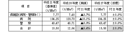 県施設(病院・警察・県立学校除く。)では基準年から若干の削減となりましたが、その他の区分においては基準年を上回り、目標に大きく届きませんでした。