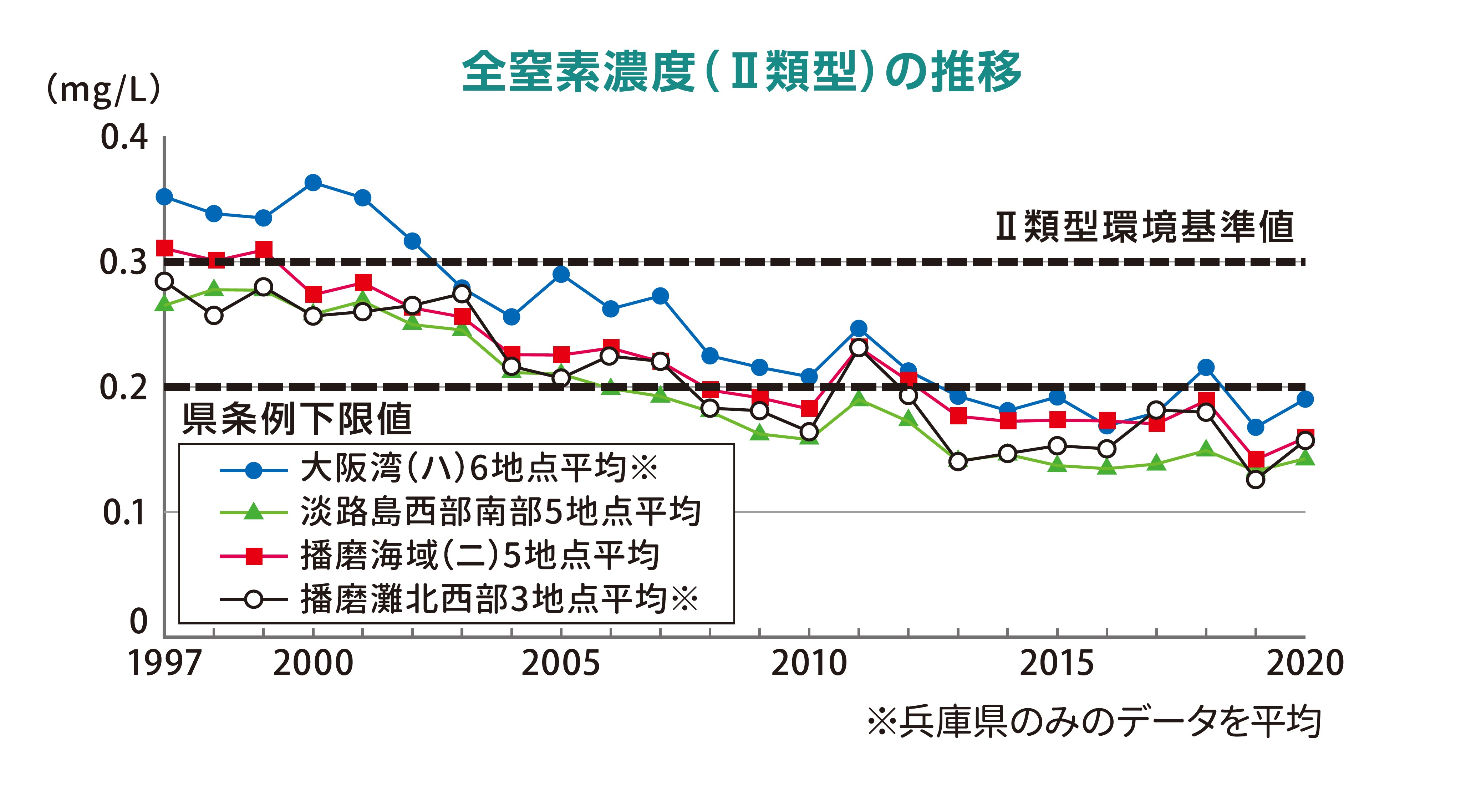 2021年6月には、瀬戸内海環境保全特別措置法が改正され、特定の海域への栄養塩類供給が可能となりました。兵庫県は、2022年10月21日に瀬戸内海の関係府県に先駆けて同法に基づく「栄養塩類管理計画」を策定し、栄養塩類、特に全窒素の供給量増を目指しています。